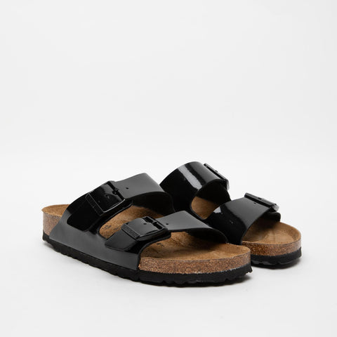 ARIZONA BLACK PATENT WOMEN'S SLIPPERS IN PAINTED BIRKO-FLOR